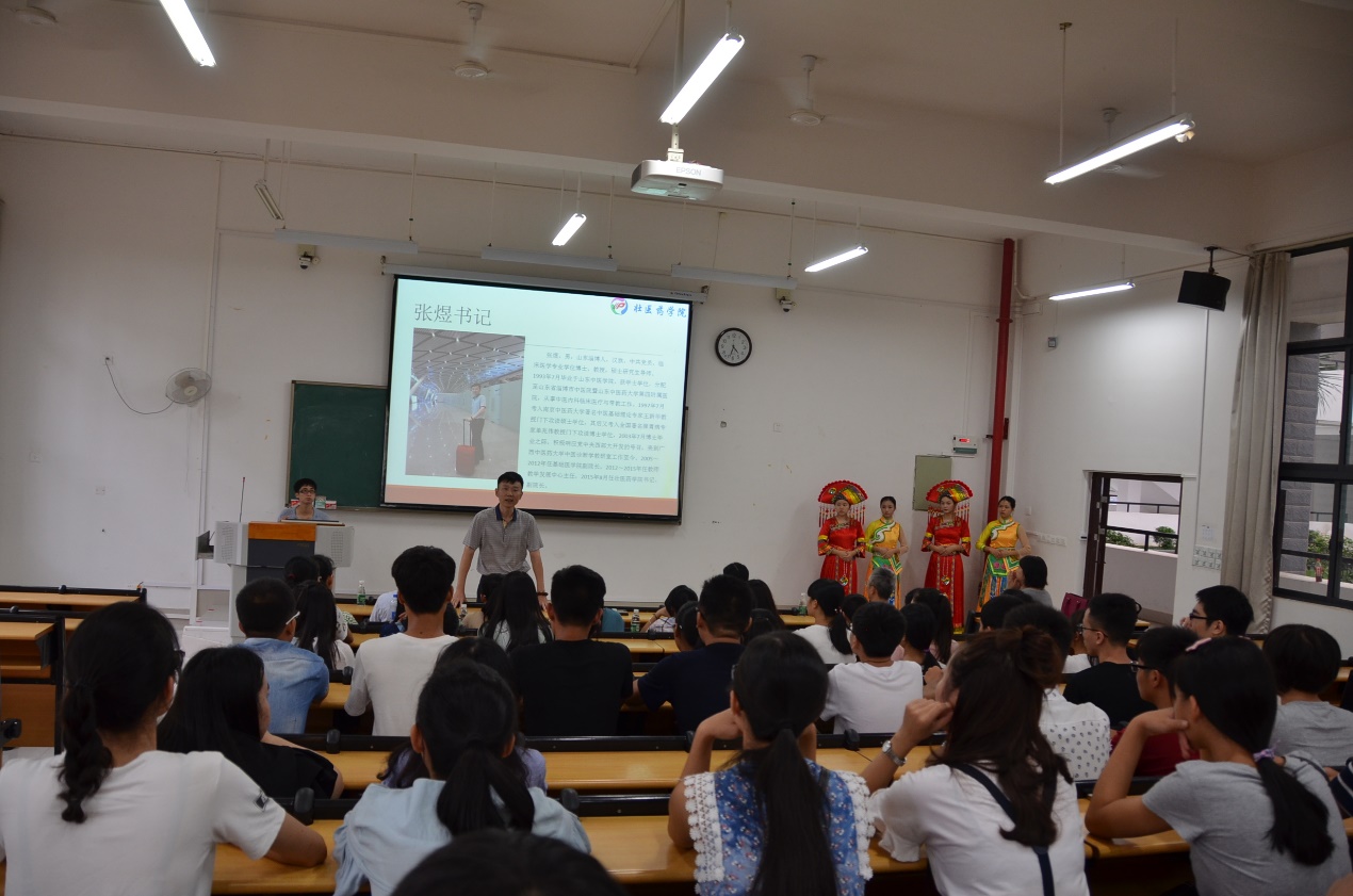 紧接着下午召开了新生见面会,主持人首先对2016级新生以及出席本次见面会的领导、老师们的到来表示热烈的欢迎。随后,壮医药学院党总支书记张煜对同学们提出了一些大学学习和生活相关的要求,他告诫大家要继续努力,不忘初心,不能停下前进的步伐才能有所收获。
