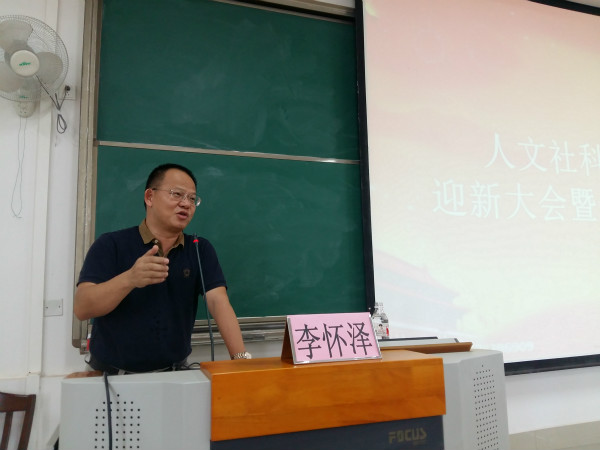 人文社科学院党总支书记李怀泽教授为新生们介绍学院情况