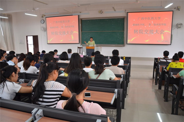 8月30日,基础医学院分别与第一临床医学院、瑞康临床医学院在仙葫校区召开了学生转院交接大会。9月1日,基础医学院与骨伤学院在明秀校区顺利完成学生转院交接大会。转院交接的学生涉及临床医学、中医学、中医学(传统方向)、中医学( 农村定向方向 )、中医学(骨伤方向)、口腔医学等专业的2014级学生合计623人。其中基础医学院294名学生转入第一临床医学院,270名学生转入瑞康临床医学院,59名学生转入骨伤学院,其中第一临床医学院涵盖2014级中医学、中医定向、传统中医和口腔医学5个班级。