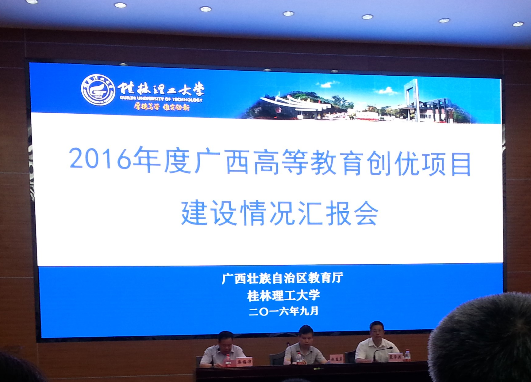 广西教育厅于2016年9月24日在桂林理工大学召开2016年度广西高等教育创优计划教学相关项目(以下简称“创优项目”)建设情况汇报会。所有2016年获得自治区财政经费资助的创优项目,包括15个自治区级优质本科专业、16个自治区级特色本科专业、50个自治区级创新创业教育改革示范专业、56个自治区级协同育人平台(项目)、31个自治区级大学生校外实践教育基地、22个自治区级创新创业教学团队、9个自治区级教师创新创业教育能力发展中心、3个广西大学生创意创新创造创业中心分中心,均派人参加了会议。