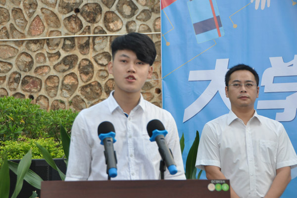 《大学生第二课堂学分认证》创新创业项目的成员任浪同学作为学生代表进行发言,他表示:“树木想要成才,必须根植沃土”,我们的创新思维就好像一粒种子,大学生创新创业基地正是我们的创新思维的养分,依托这个孵化创意与梦想的平台,可以让我们有更多机会从创意到实干,逐渐将梦想变为现实。感谢学院给我们提供了这个进一步实现梦想的平台。