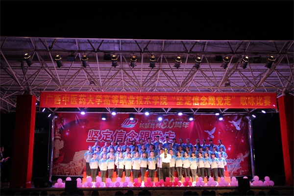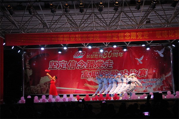 为迎接纪念鸭脖恢复办学60周年,弘扬爱党爱国精神,丰富校园文化生活。2016年11月18日晚,高职院党总支在明秀校区举办了主题为“坚定信念跟党走”的歌咏比赛。高职院全体在校师生党员、入党积极分子与各合作办学企业嘉宾一同欣赏了这场精彩的歌咏比赛。