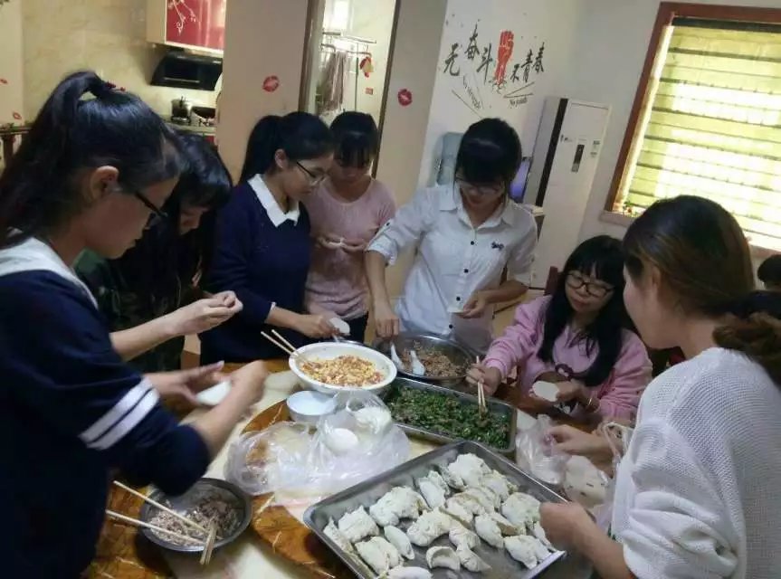 同学们一起包饺子