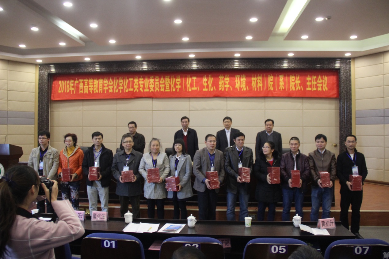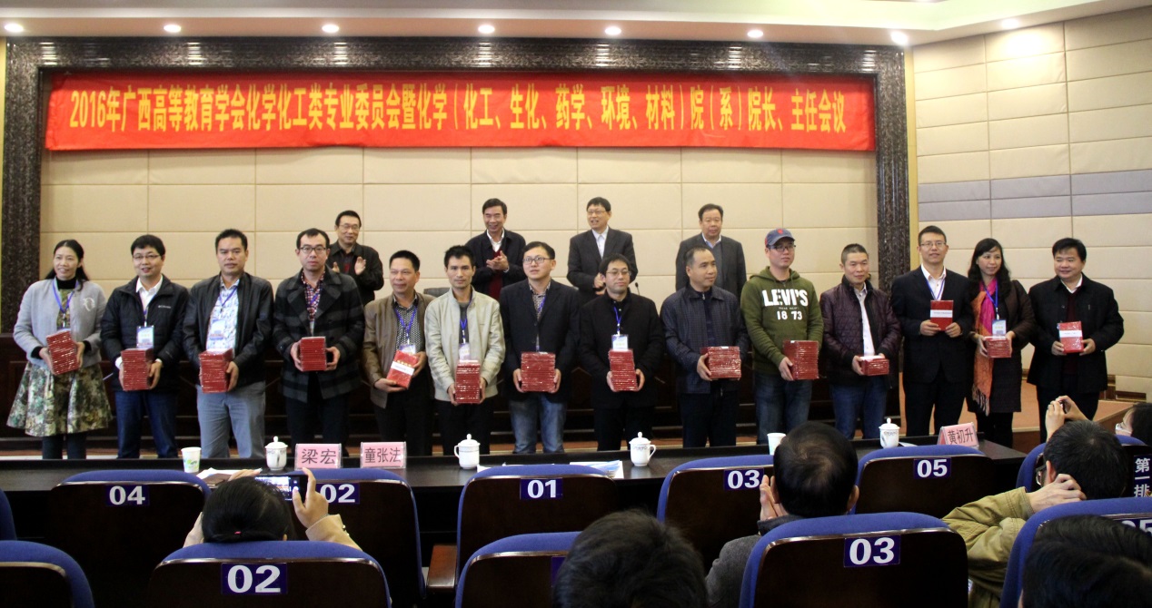 2016年化学化工专业委员会暨化学(化工、生化、药学、环境、材料)院长会议于12月2日至4日在广西科技师范学院(位于来宾市)召开。全区共32所具有相关专业的本专科、高职高专院校代表参加了会议。YABO鸭脖药学院陈勇院长、卢汝梅副院长及郭占京老师作为委员会常任理事单位代表参加了会议。会议过程中主办方宣读了广西高校大学生第十七届化学化工类学术创新成果文竞赛的通知(桂教高教[2016]61号)。其中YABO鸭脖药学院获一等奖3项,二等奖2项,三等奖3项。