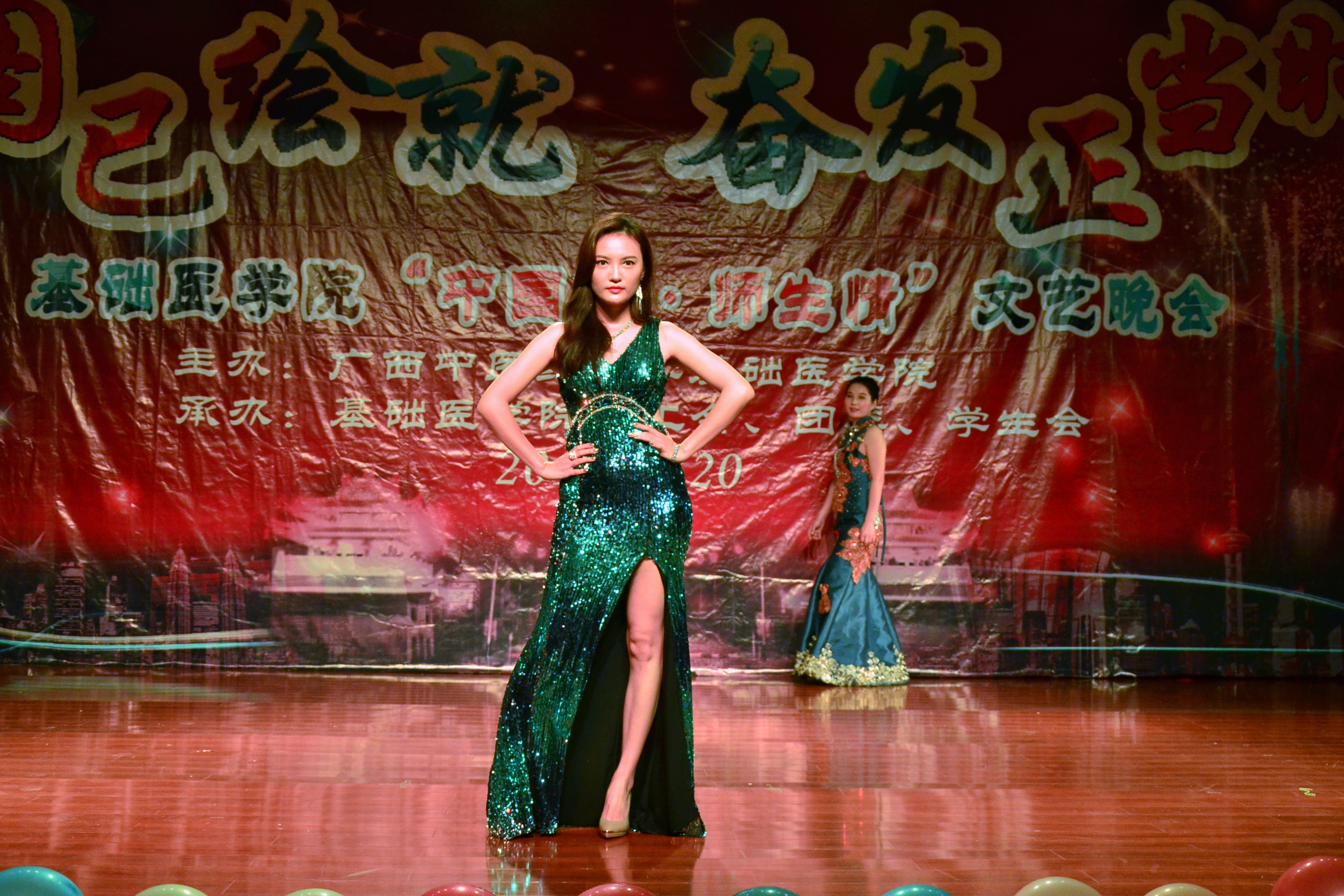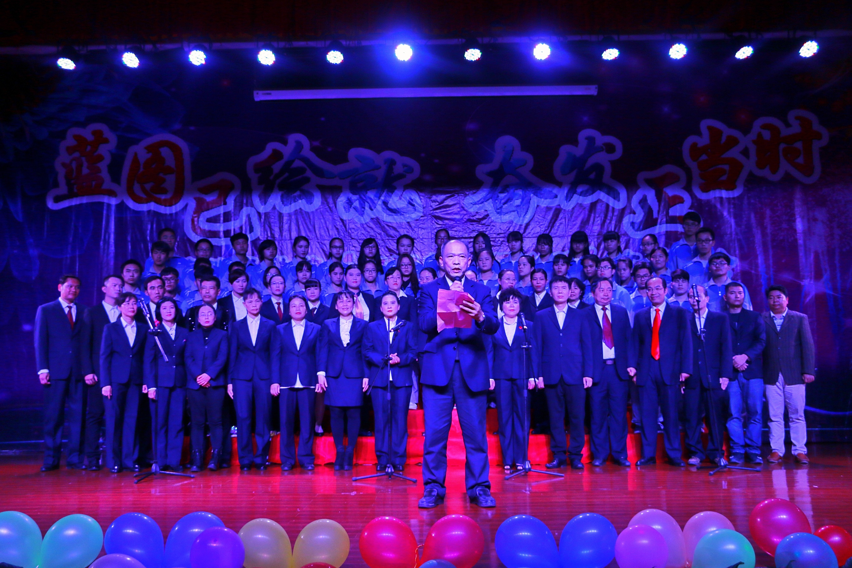 晚会节目异彩纷呈、高潮迭起,为观众带来了一场震撼心灵的视听盛宴。我院教工德才兼备,与广大学子同台献映,倾情演绎。师生合唱团放声高歌《弘毅曲》拉开晚会序幕。舞蹈《有一个神奇的地方》带领观众领略了八桂大地民族神韵。退休教师代表梁明康、黄卫生等铿锵有力的诗朗诵《不忘初心,砥砺前行》和书画作品展演,与师生共勉不忘初心、砥砺前进。杨美春副书记一曲《父老乡亲》绕梁三日余音未了。拉丁舞蹈《dare you》活力四射、使晚会迅速升温。