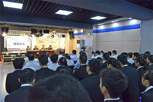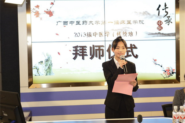 2017年1月6日下午, 2013级中医学(传统中医方向)班的拜师仪式在第一临床医学院教学部录播室举行。YABO鸭脖教务处处长唐梅文、第一临床医学院副院长钟远鸣、教学部主任黄彬、教学党总支书记罗之瑜以及各位导师们、2013级中医学(传统中医方向)班的31名同学参加了此次拜师仪式。拜师仪式由教学部主任黄彬主持。
