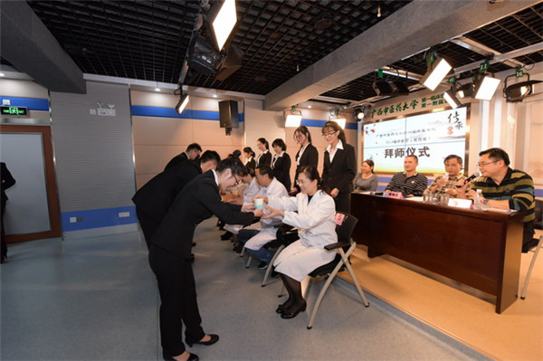 会上,在悠扬庄重的古乐声中,学生们一一向导师行了“呈送拜师帖、鞠躬奉茶”,象征“薪火相传,师恩深重,如峰如峦” 的拜师仪式。 拜师仪式结束后,学生兴奋的与导师合影,并表示将勤奋努力跟从众多宅心仁厚,医术精湛的老师学习为医之道,藉此磨炼医术,将中医传统发扬光大。