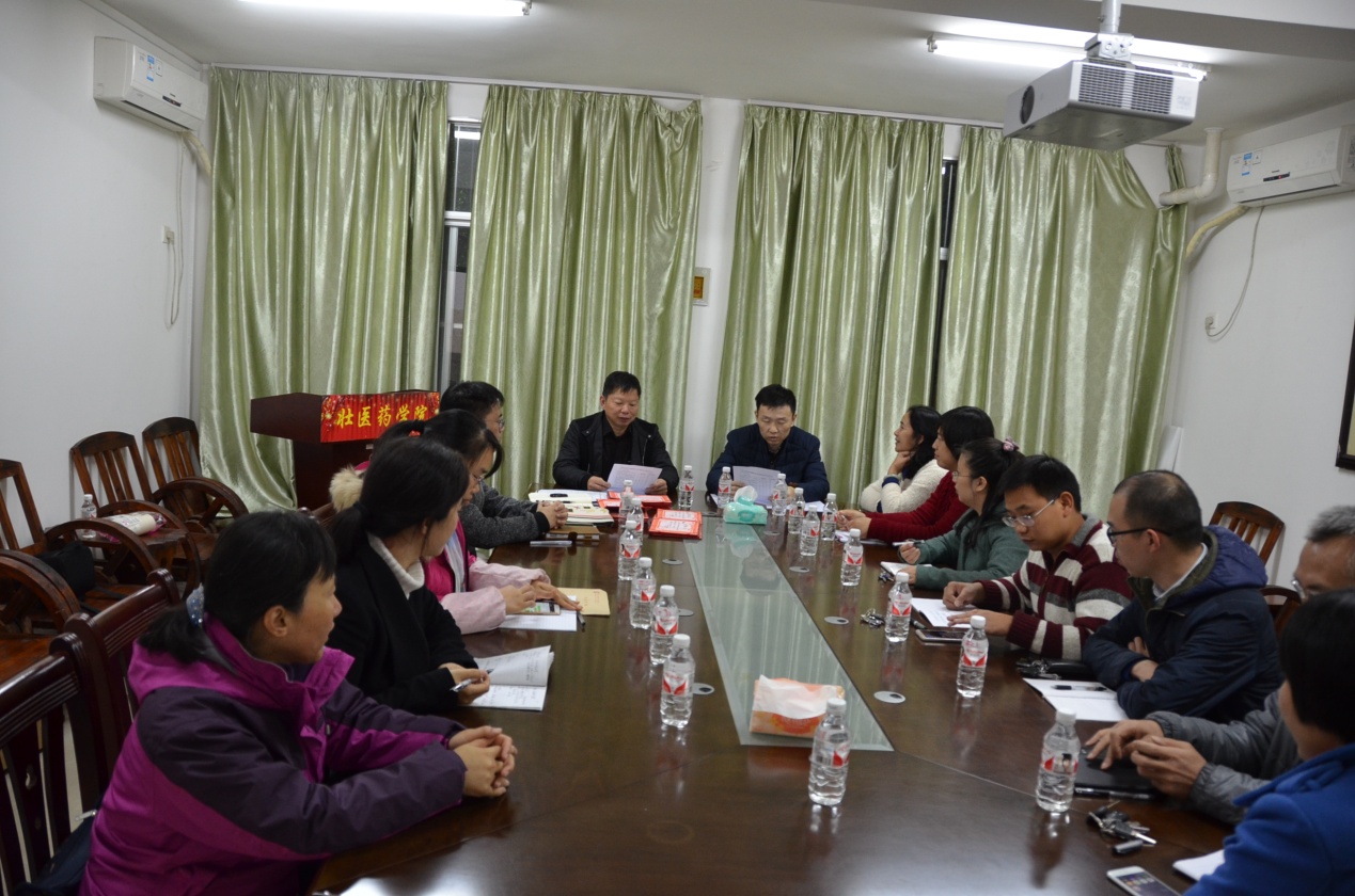 2017年1月11日下午,壮医药学院在壮医楼201召开学期总结及表彰大会,壮医药学院全体教职工参加。