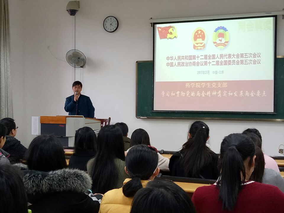 药学院学生党支部书记管海钦老师带领学生党员学习“两会”精神