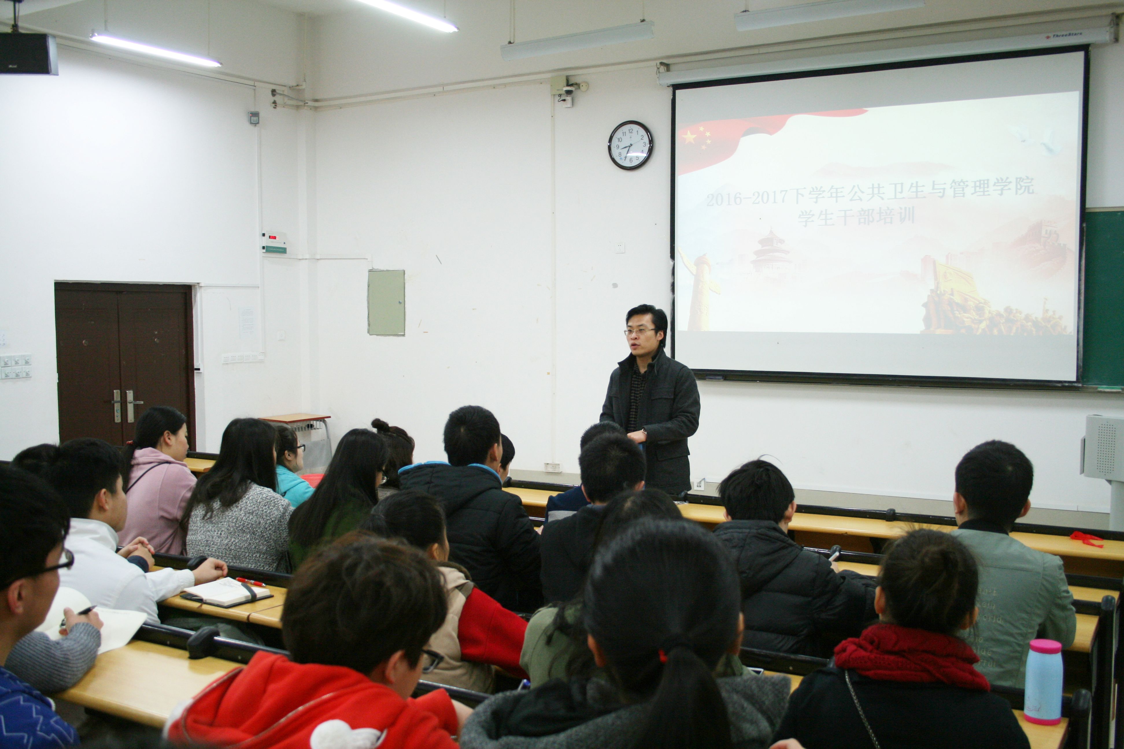 进一步提高公共卫生与管理学院骨干学生干部的工作能力学生工作办公室19日上午8时30分在仙葫区教学楼2-101教室举行本学期首次骨干学生干部培训。学院团委书记宋南老师担任主讲老师,团委学生会全体成员、各班班长和团支书是本次培训的主要对象