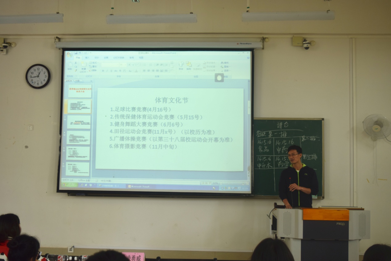 为了弘扬体育精神,倡导同学们吃苦耐劳和顽强拼搏的精神,进一步推动药学院体育运动的发展,也为更好地响应鸭脖2017年度体育文化节系列活动号召,2017年3月21日下午,药学院在2-101教室召开了2017年度体育文化节动员大会,药学院学生工作办公室主任凌勇威老师、学生会体育部及各班级负责人于仙葫校区参加会议。