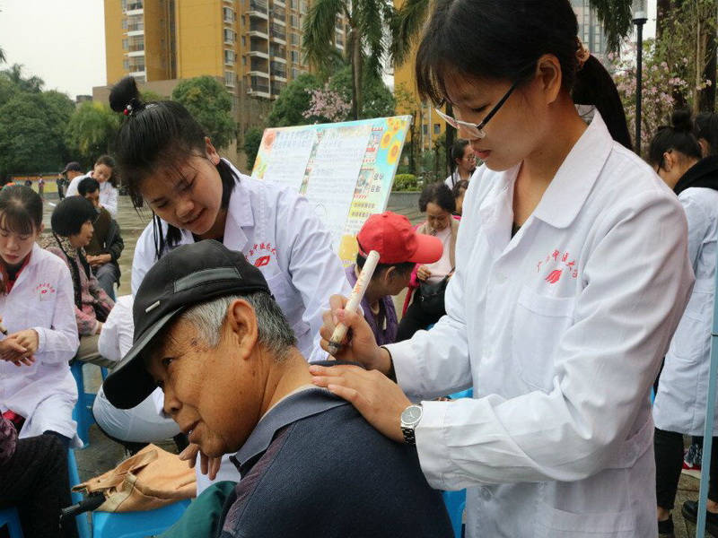 本次义诊活动分小组以知识宣讲、实践操作的形式展开。宣讲组围绕着现下盛行的H7N9及春季常见呼吸道传染性疾病,向广大民众普及相关的疾病预防知识及救治措施。而义诊组则实力践行中医养生保健的知识,通过按摩、艾灸等方式为社区广大居民提供保健服务。护生们饱满高涨的精神及扎实的中医知识技巧的运用得到了居民们的连连称好。