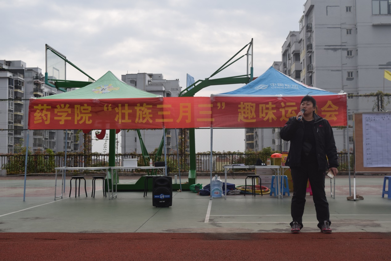 为庆祝“壮族三月三”的到来,同时也为积极推动药学院全民健身活动的开展,丰富同学们的业余文化生活,增进相互交流和友谊,促进和谐校园建设和发展。2017年3月26日药学院在仙葫校区体育场举办药学院“壮族三月三”趣味运动会。参赛人员为2015级各班级代表队。