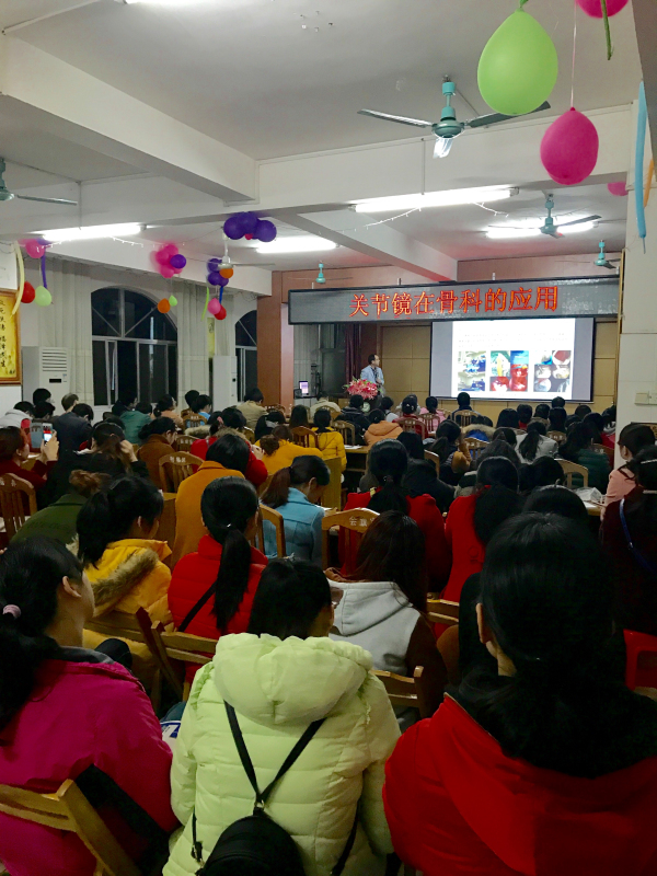 在隆安县中医院会议室里,李书振主任、苏波技术主任为隆安县中医院及隆安县乡镇卫生院基层医生进行了学术讲座。在《关节镜在骨科的应用》讲座中,李书振主任为大家介绍了关节镜的应用部位及适应症;在题为《膝骨关节炎的阶梯治疗》讲座中,苏波技术主任为大家介绍膝骨关节炎的早期、早中期、中晚期、晚期的治疗治疗方式。