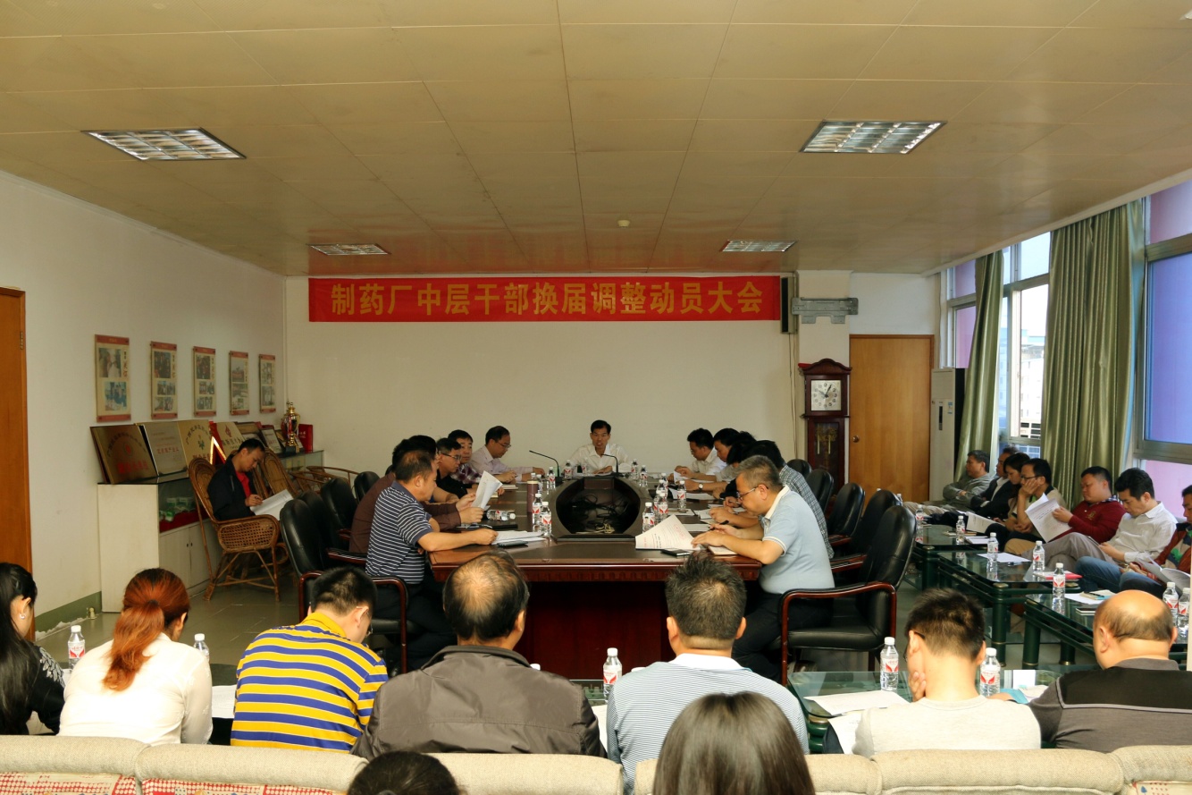2017年4月11日上午,制药厂在科研办公大楼六楼会议室召开了中层干部换届调整动员大会,制药厂领导班子全体成员、中层干部、各党支部支委、全体班组长等干部职工近60人参加动员大会,会议由制药厂副厂长陈洪涛同志主持。制药厂中层干部任期届满换届调整工作按既定计划正式启动,该项工作计划4月底结束。