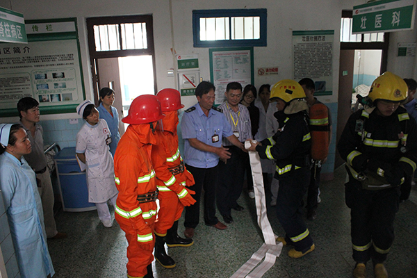 扶绥县消防大队针对此次消防演练做了详细的演练方案,认真细致地介绍了预防火灾的基本知识、火灾类型以及一些消防设施的使用方法,如:灭火器操作、消防水袋连接收卷、消防枪头连接等等。县消防大队结合医院特点,针对火灾发生后如何自防自救、引导病员紧急疏散以及逃生的方法做了详细的演练。