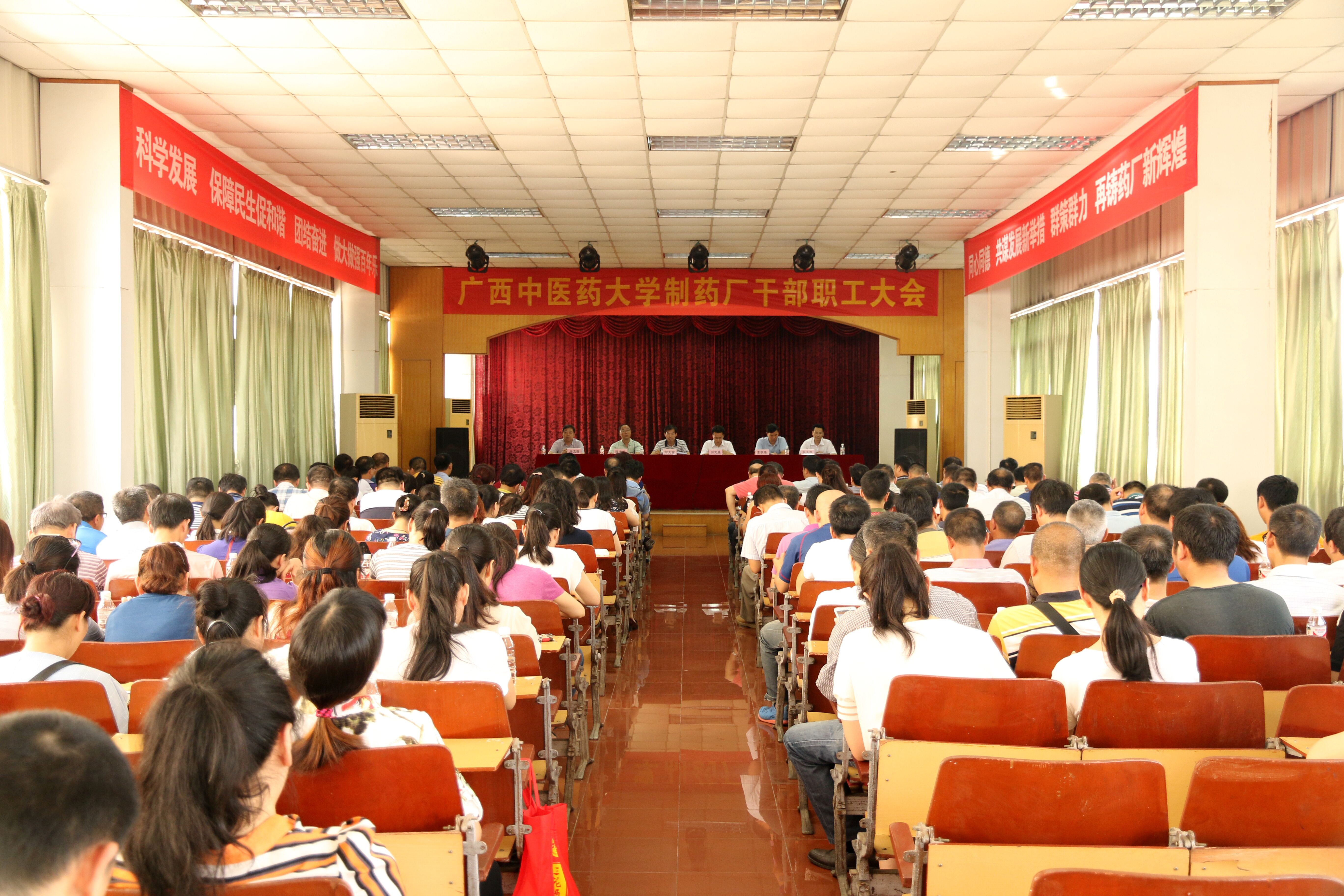 2017年5月3日下午,制药厂在科研办公楼8楼会议室召开全厂干部职工大会。制药厂党委书记、厂长何天富,党委副书记、纪委书记彭定基、副厂长陈洪涛、覃明雄、吴玉强,副处级调研员张义欢以及制药厂全体干部职工近250人参加了大会。大会由陈洪涛主持。