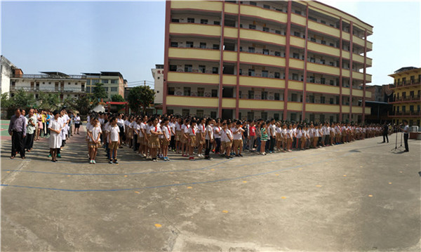 5月5日,一附院副院长吴西西带领眼科团队医护人员,携手南宁市武鸣区中医院走进市武鸣区城厢镇第三小学开展“壮乡儿童光明梦-近视防控、爱眼护眼”健康活动启动仪式大会。此活动得到南宁市武鸣区卫生和计划生育局、教育局的支持,城区教育局副局长黄喜新、卫生局副局长蒋守念、医政中医股股长林伟鹏、武鸣区中医院院长赵建峰、城厢镇第三小学校长等领导参加活动,3000多名师生、家长代表和医护人员参加启动仪式。