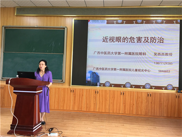 启动仪式结束后,吴西西为学校老师、家长代表及城区医护人员进行了“近视眼的危害及防治”讲座,给大家分享专业知识,深入浅出地讲解近视可能带来的一系列社会与健康危害,并就如何做好儿童近视防护提出建议。