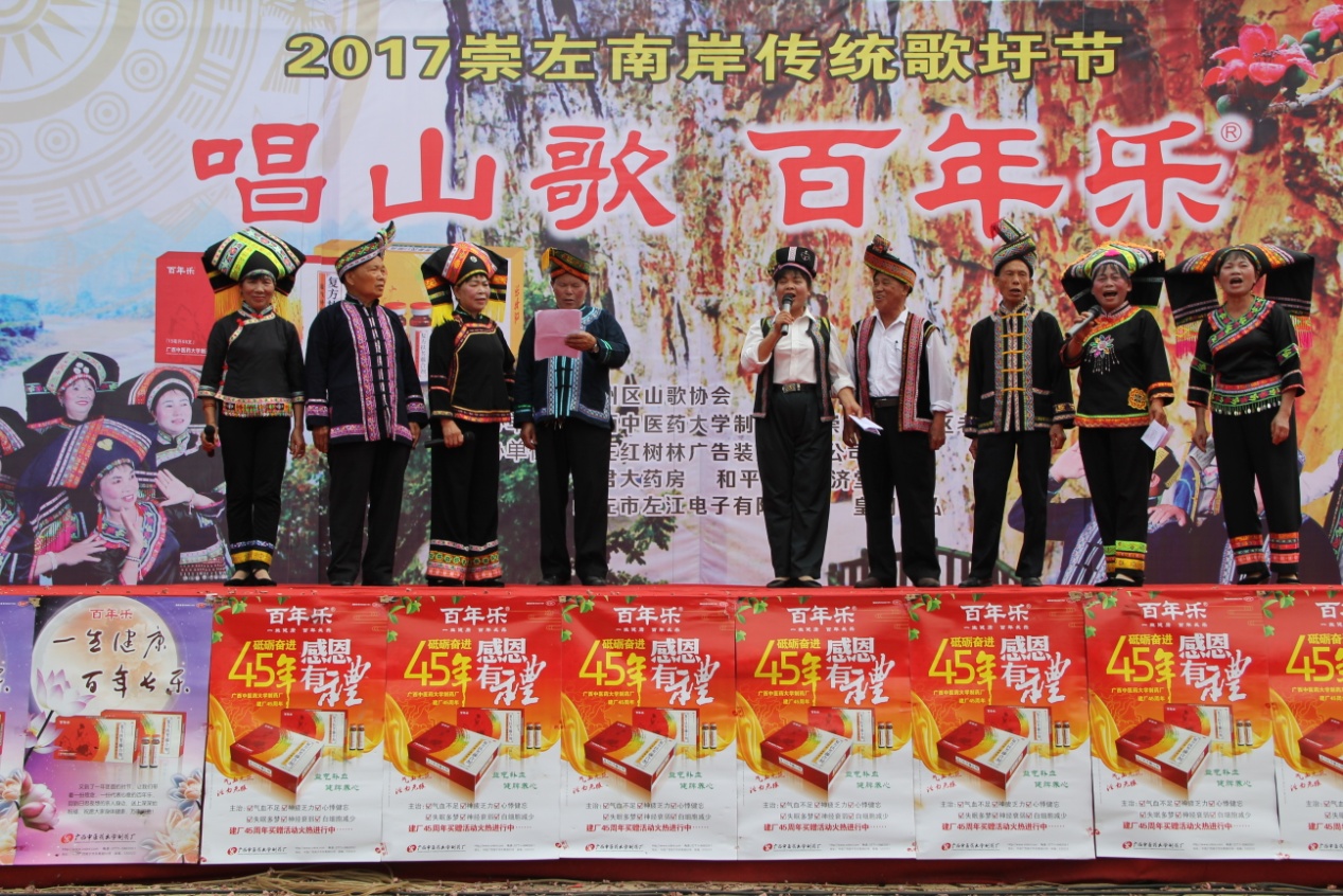 唱山歌迎来客,百年乐送健康 来源:YABO鸭脖制药厂 作者:栗娜/文 卢发建/图 日期:2017-05-12 点击数: 次 分享到: 5月11日,崇左市江州区迎来了一年一度的传统歌圩节。主办方江州区山歌协会在火车站站前广场搭建起山歌台,吸引了上万群众参加。制药厂作为承办单位之一,受邀参加了此次歌圩节。 百年乐作为广西著名品牌,家喻户晓。台上,歌手把对百年乐的喜爱和感激唱进了歌里;台下,热情的制药厂工作人员把百年乐的健康理念送到群众身边,赢得了现场观众的一致好评。 传统节目—对山歌 冲饮现场 打印正文 关闭本页
