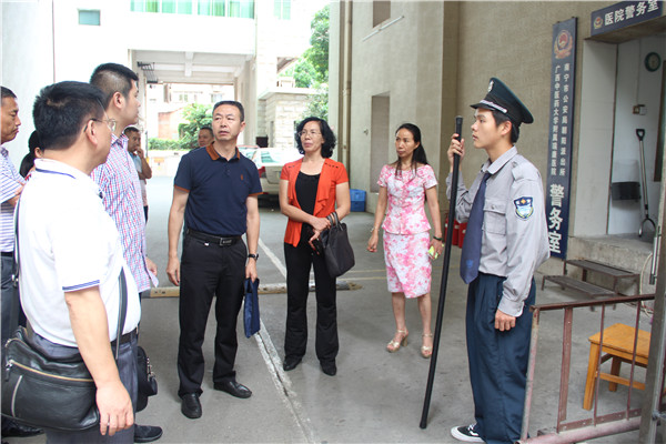 7月10日上午,南宁市反恐支队副调研员宁卫祥一行6人莅临瑞康医院,督导检查医院反恐工作开展情况。医院党委书记高宏君,党委副书记、副院长陈日兰及党办、医务部、后勤科等相关职能部门负责人热情接待并陪同检查。