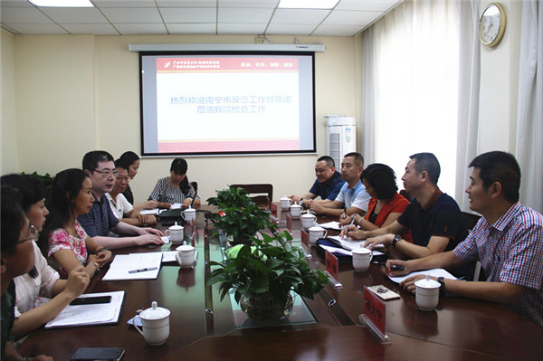 高宏君代表医院对南宁市反恐工作督导组在社会治安工作上给瑞康医院的支持和帮助表示感谢,并简要介绍了医院的基本情况,客观分析了当前医院面临的反恐维稳形势及工作短板。陈日兰向督导组详细汇报了医院反恐工作开展情况,表示医院一直以来高度重视院内治安防暴工作,并投入了大量的人力、物力和财力,取得了一定的成绩,但也面临着就诊人流量大、人员情况复杂、治安管理难度大等诸多问题,社会治安、反恐压力日益凸显;希望得到市公安局及辖区各级公安部门进一步的支持和指导,医院将积极贯彻上级部门关于加强医院安全防范系统建设的精神,配合公安部门做好社会信息资源整合及共享工作,通过警民联动、警医联手,共同做好医院的治安防范工作。
