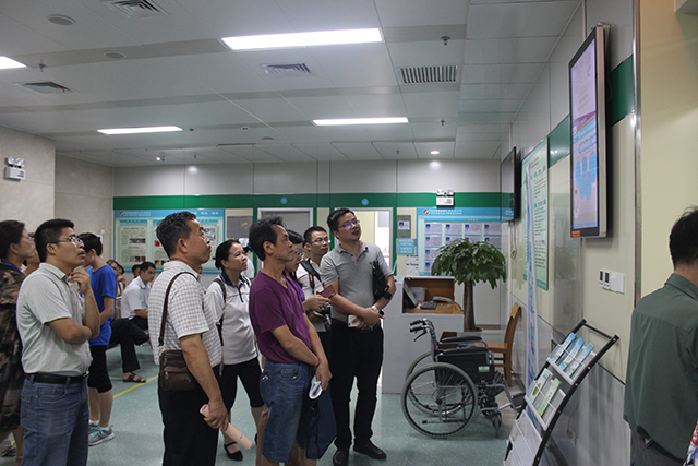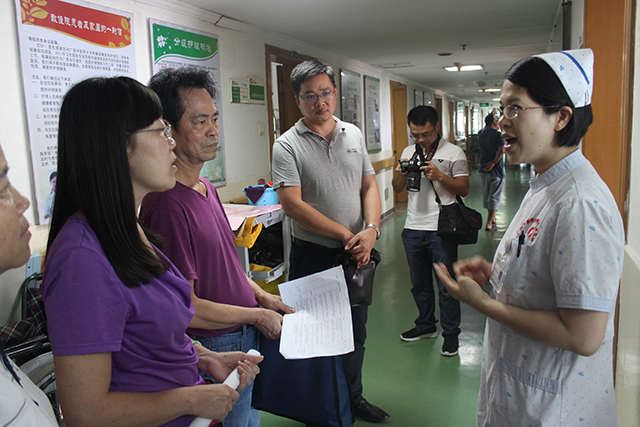 汇报会后,考核专家组先后来到骨科、内镜中心、神经内科一区、A座二楼门诊区等地进行实地考察,并与科室相关负责人、患者、志愿者等沟通交流。考核专家组还详细查看了项目工作相关的文件资料。