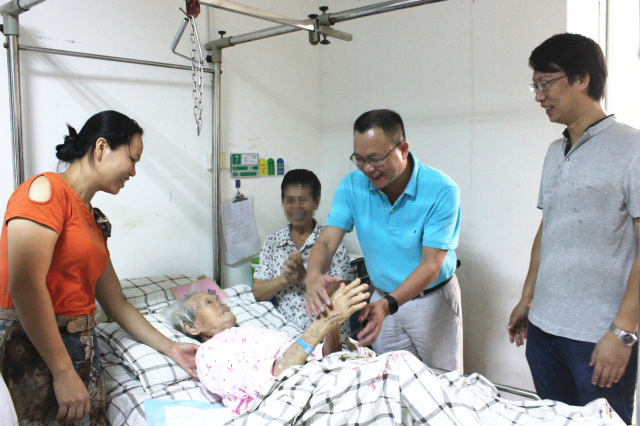 7月12日,瑞康医院空港院区执行院长梁春才、副院长朱志华到骨四肢科病房看望百岁病人陆婆婆,嘱咐她安心养病,并送上了慰问金。