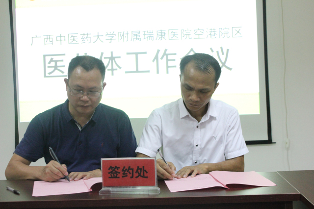 为加快推进基层公立医院医疗体制改革的进程,按照扶绥县卫计局的统一部署,8月2日,瑞康医院空港院区医共体工作会议暨合作单位签约仪式在院区二楼大会议室举行,院区执行院长梁春才代表YABO鸭脖附属瑞康医院空港院区,分别与龙头乡、山圩镇、渠黎镇、东罗镇、岜盆乡五家卫生院的负责人进行签约。扶绥县卫计局副局长凌绍华,院区执行院长梁春才,院区党支部书记林宗汉,院区副院长黄建东、朱志华,五家乡镇卫生院院长及院区全体中层干部参加了会议。