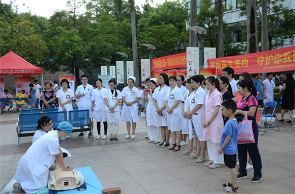 本次大型义诊活动得到了周边居民的大力支持,通过前期对周边居民的走访调查了解,风岭北社区周边的居民大部分与老人同住,为更好的提高群众对家中老人晕倒、摔倒等急救处理能力,仙葫院区急诊科的专家特别准备了心肺复苏急救方法的现场演示,引得现场群众争相学习,个别群众还亲自上台学习了心肺复苏急救方法。