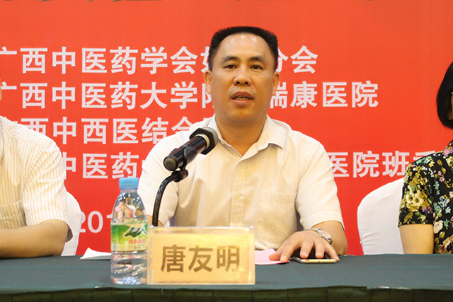 唐友明在致辞中表示,许多妇科界德高望重的老前辈、老专家以及广西各地的妇科专家云集本次大会共同探讨中医妇科的学术发展,充分体现了我区中医妇科界的敬业和团结,对学术思想传承的重视。瑞康医院各科室都能够坚持中西医并重、坚持中西医两条腿走路、平衡协调快速发展,医院明确提出了现代医学技术先进、中医药特色鲜明、中西医结合优势突出的医院定位,提出了包括妇科在内的十个学科打造中西医结合区域诊疗中心的目标。瑞康医院妇科是国家中医药管理局重点建设专科,也是广西中医药学会妇科分会、广西中西结合学会妇科分会、广西中西医结合学会妇科内镜分会主委单位,拥有自治区卫计委“国医大师班秀文不孕不育临床研究中心”,医院妇科腔镜中心拥有先进的检查和治疗手段,中西医结合,优势互补,在中西医结合治疗不孕不育症方面享有很高声誉。希望通过本次学术会议,推动广西中医妇科医学水平的前进步伐,为人民群众健康事业发展做出积极贡献。