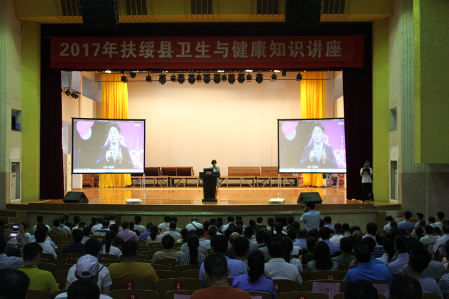 为贯彻全国及自治区健康大会精神,增强广大干部职工的健康意识,提高保健水平和身体素质,普及卫生防病知识,培育文明健康新风,8月28日上午,在扶绥县委县政府的安排下,在扶绥县卫计局精心组织下,瑞康医院空港院区为全县400余名副科级以上干部在扶绥剧场举办了一场精彩的中医健康养生知识讲座。讲座由扶绥县委常委、宣传部部长、副县长陈英主持,由瑞康医院华东院区神经内科三区(康复病区)主任陈晓锋和空港院区副院长朱志华博士主讲,空港院区党支部书记林宗汉、部分临床科主任参加了讲座。
