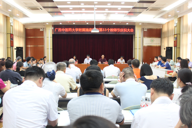 2017年9月7日下午,在第33个教师节来临之际,瑞康医院召开了教师节庆祝大会,医院院长唐友明,党委书记高宏君,党委副书记、副院长陈日兰,副院长韦思尊出席会议,来自全院约60位教师代表参加。会议由党委书记高宏君主持。