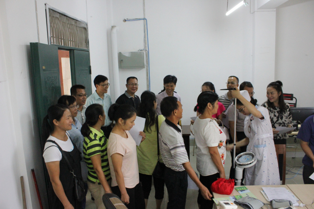 体检中(右2扶绥县卫计局局长卢国坚,右1院区执行院长梁春才)