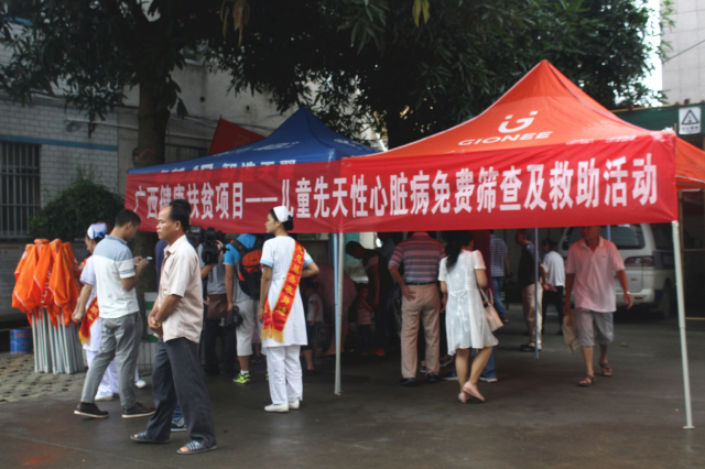 2017年10月10日,YABO鸭脖附属瑞康医院心胸外科及超声科专家团队携手广西青少年发展基金会、共青团南宁市委员会、广发银行一起走进隆安县,开展广发慈善基金“希望新心”项目启动仪式暨先天性心脏病筛查义诊活动,为贫困家庭先天性心脏病患儿送去“心希望”。