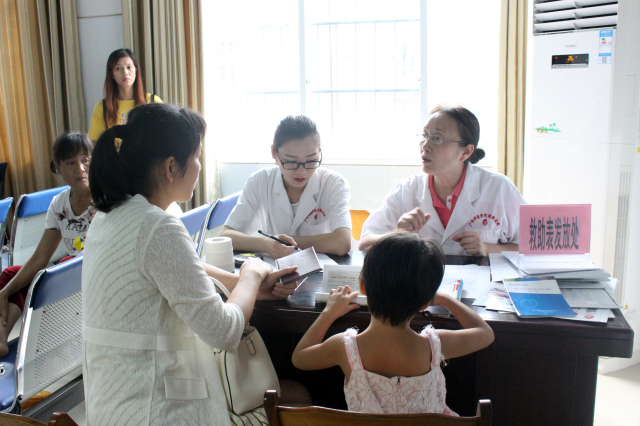 此次义诊首站是隆安县人民医院,瑞康医院专家团队为疑似先天性心脏病的患儿进行了免费普查,为已接受先天性心脏病手术的少年儿童进行了免费复诊。除了义诊,心胸外科杨柳山主任还为隆安县妇幼保健院医护人员进行小儿先天性心脏病筛查、治疗、贫困救助及转诊的知识培训,为提高当地医生诊疗水平贡献力量。
