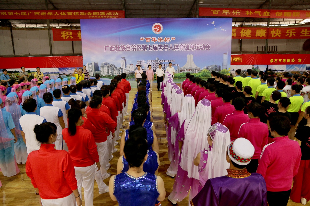 2017“ 百年乐杯”广西壮族自治区老年人体育运动会民族健身操、太极拳(剑)、民族健身舞三项赛事,于10月11日至18日在南宁西乡塘区华泰球馆展开角逐。
