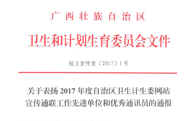 喜报:瑞康医院荣获2017年度自治区卫生计生委网站宣传通联工作先进单位