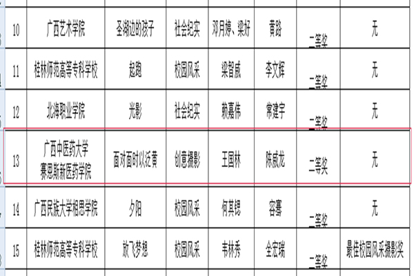 近日,我院2016级中医10班王国林同学的《面对面时以泛黄》摄影作品在第四届广西大学生网络文化节活动比赛中荣获创意摄影比赛二等奖,为我院创下佳绩。