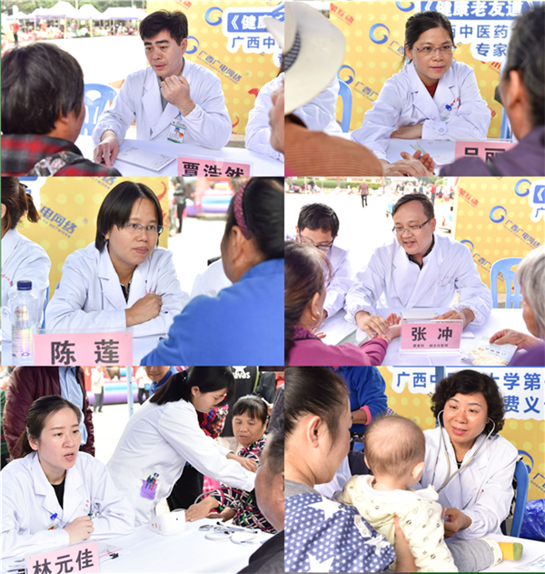 此次义诊专家由来自仙葫院区的康复科、脊柱外科、儿科、妇产科、肿瘤科及脾胃肝病科组成,阵容十分强大。一大早,仙葫院区专家名医团队从南宁驱车前往河池市金城江区,只为给河池市民送来贴心的义诊服务。在义诊活动中,仙葫院区的专家团队热情接待每一位前来就诊或健康咨询的居民群众,量血压、测血糖、问诊、把脉、开中药健康处方,专家们耐心解答前来就诊群众的各种问题,对其健康症状进行相关的讲解并给予养生建议,让他们及时了解自己的身体状况及相关疾病的预防。