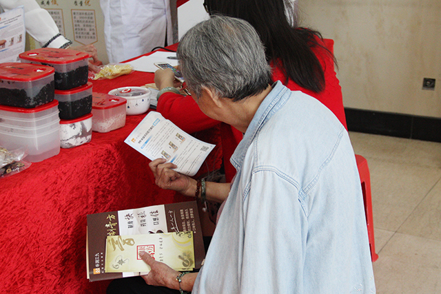 工作人员向群众介绍膏方