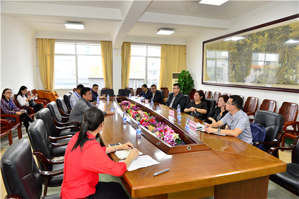 在桂雄斌的陪同下,拉曼大学代表团一行先后参观了一附院大堂、一附院院史展、中药房、治未病中心等区域,领略了一附院浓郁的中医药文化特色。随后,拉曼大学代表团成员与桂雄斌及相关科室人员进行座谈,听取了一附院信息管理建设相关情况介绍,并针对一附院信息系统建设做了进一步的交流。