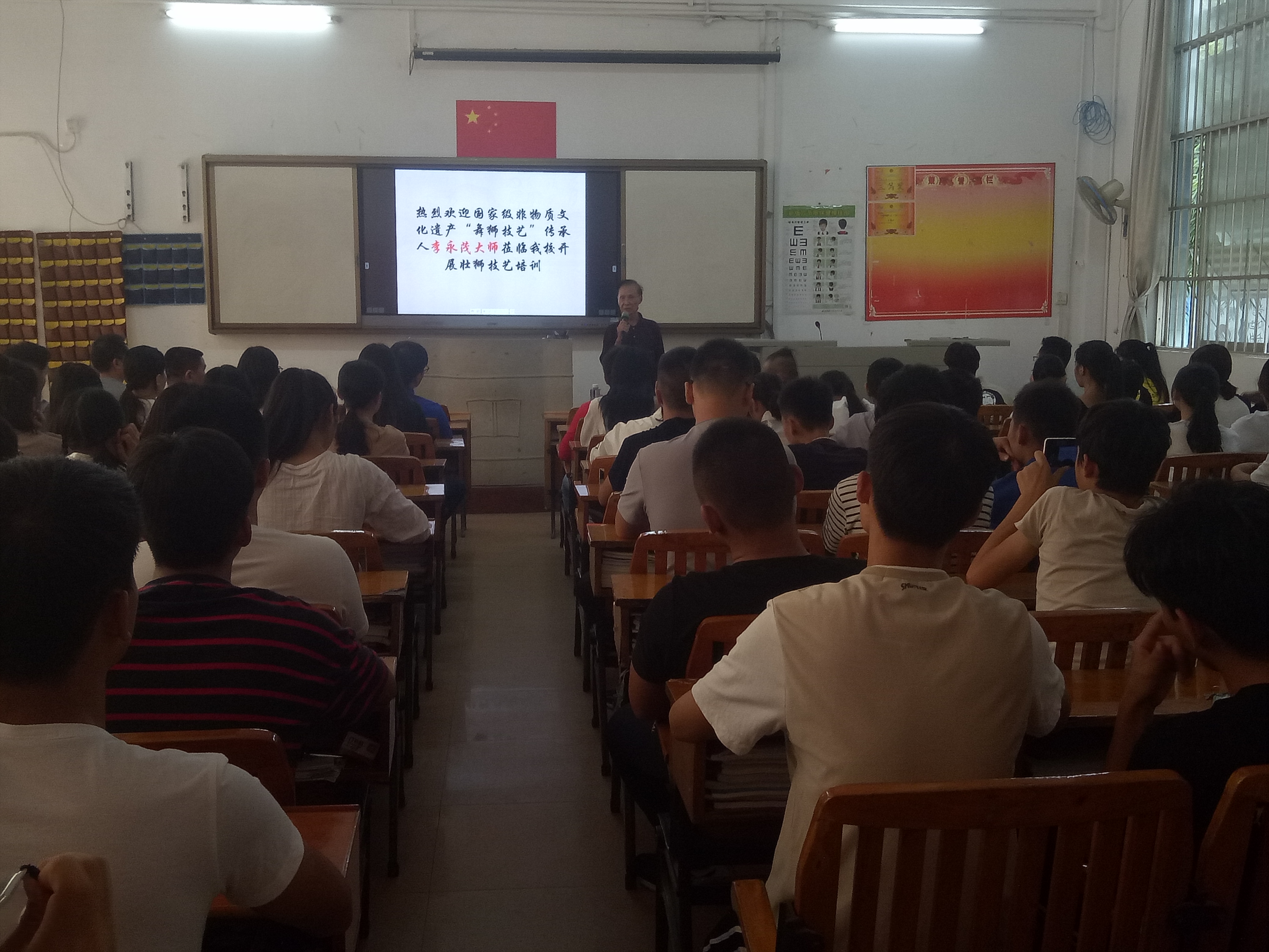 弘扬中华传统文化,传承特色民族技艺。2017年11月11日下午,广西中医学校“非遗”进校园,“壮狮”技艺传承活动正式启动。广西中医学校校长刘竑清老师、国家级非物质文化遗产“舞狮技艺”传承人李永茂大师、体育专业部老师以及各社团、班级代表参加了开班仪式。