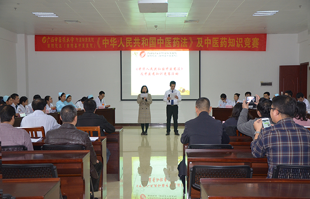 11月30日下午,为提升医师中医专业知识水平,激发大家学习中药知识和《中华人民共和国医药法》的积极性,更好地促进中医药事业的发展,瑞康医院田阳院区举办《中华人民共和国中医药法》及中医药知识竞赛活动,田阳县卫生与计划生育局副局长覃建,田阳院区院长龙驹,党支部书记甘照儒,副院长农田泉、陆秀伟出席本次比赛并为优胜队伍颁奖。