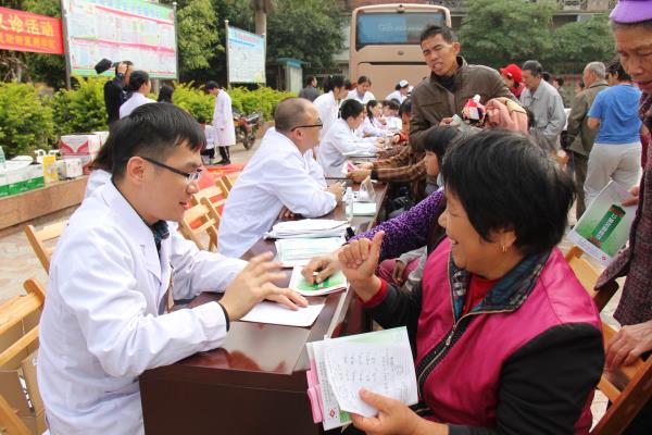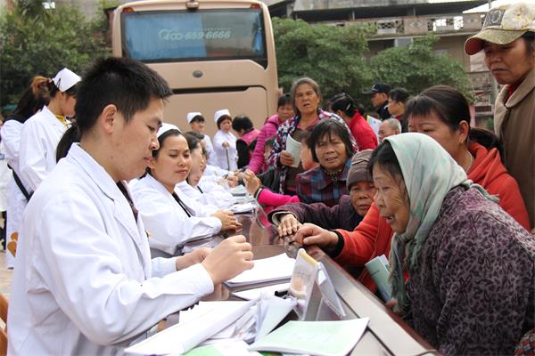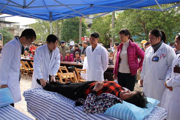 为贯彻落实党的十九大精神,深入开展扶贫帮困工作, 12月3日,YABO鸭脖赛恩斯新医药学院党委组织党员干部赴横县峦城镇开展“党旗领航助力脱贫——中医中药健康行”义诊活动。学院党委书记李成林,院长梁天坚,纪委书记叶绘晟,YABO鸭脖第一附属医院专家张以昆、刘永辉、陈广辉、周金花、李春锋、李志峰、宁余音及学院教师和学生代表45人参加此次义诊。