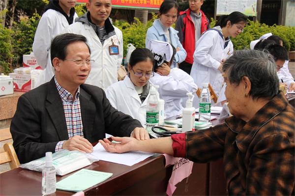 此次活动得到横县峦城镇人民政府的大力支持,YABO鸭脖驻横县工作队长、横县县委常委、副县长周德喜和峦城镇镇长雷高潮对赛院前来开展义诊活动表示热烈欢迎。活动中,来自中广西医药大学第一附属医院的内科、康复科、儿科、妇科、皮肤科等科室专家耐心仔细地为前来就诊的群众分析诊断病情、开处方、答疑解惑,使当地群众享受到免费、高质而又贴心的医疗服务;中医药大学第一附属医院主任护师宁余音在现场热情地为群众讲解健康保健知识;同学们免费为群众推拿按摩、测量血压、发放健康教育宣传资料、指导群众练习 “八段锦”,通过多种形式向群众普及健康知识,提高群众对健康防护知识的实际应用能力,义诊现场气氛热烈。活动中,李成林、梁天坚在周德喜、雷高潮的陪同下前往建档立卡贫困户雷发华家中进行诊疗及赠送药品。