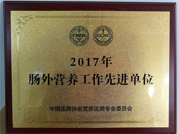 一附院荣获2017年“肠外营养工作先进单位” 来源:一附院 作者:江涛 日期:2017-12-05 点击数: 次 分享到: 12月1日—3日,在北京召开的“中国医师协会营养医师专业委员会年会暨成立十周年学术会议”上,对全国临床营养工作先进单位进行了表彰,一附院荣获2017年“肠外营养工作先进单位”称号。在大会肠外营养分会场一附院营养科副主任、中国医师协会营养医师专业委员会肠外营养学组副组长江涛汇报了工作并分享了病例,与会专家们对一附院规范、个性、效果显著的肠外营养治疗工作给予高度认可。 牌匾 打印正文 关闭本页
