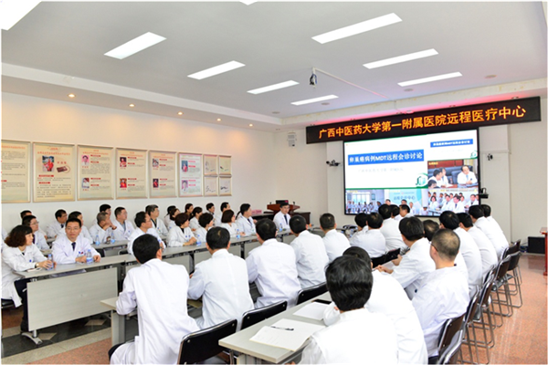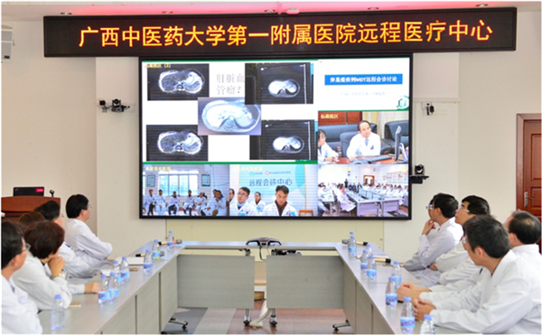12月7日,由一附院建立的广西中医药发展联合体远程医疗中心正式启用,并成功实现了一附院东葛院区、仙葫院区、来宾市中医医院、巴马瑶族自治县民族医院的首次远程医务会议和远程病例会诊,这标志着一附院互联网+智慧医疗建设又迈出了新的一步,标志着一附院实现上联、下联、内联、外联的“联动共建”理念又推进了新的一步。