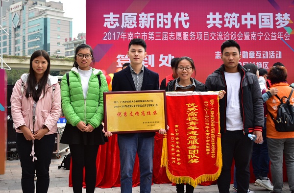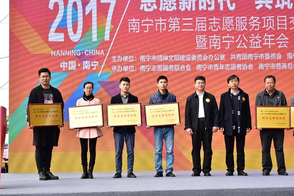 会上对2016-2017年度优秀青年志愿者团队、优秀青年志愿服务项目以及青年志愿服务工作优秀支持单位进行了表彰。我院青年志愿者秉承“明德自强和而不同”的院训,开展了一系列志愿服务活动并积极配合做好南宁市各项大型赛事活动,以青春热情奉献社会,用医学专长服务百姓,受到了社会的好评。最终,我院荣获2016-2017年度南宁市大型赛会青年志愿服务工作“优秀支持高校奖”表彰,青年志愿者协会荣获2016-2017年度南宁市“优秀高校青年志愿服务团队奖”。