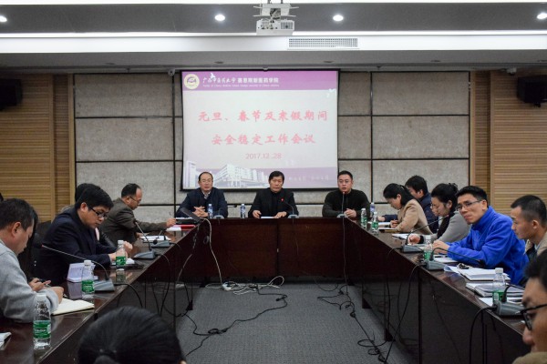 12月28日下午,赛恩斯新医药学院在八楼大会议室召开会议部署元旦、春节和寒假期间安全稳定工作,院长梁天坚,党委副书记、纪委书记叶绘晟,副院长赵斌以及全体中层干部、各支部书记参加了会议。会议由叶绘晟主持。